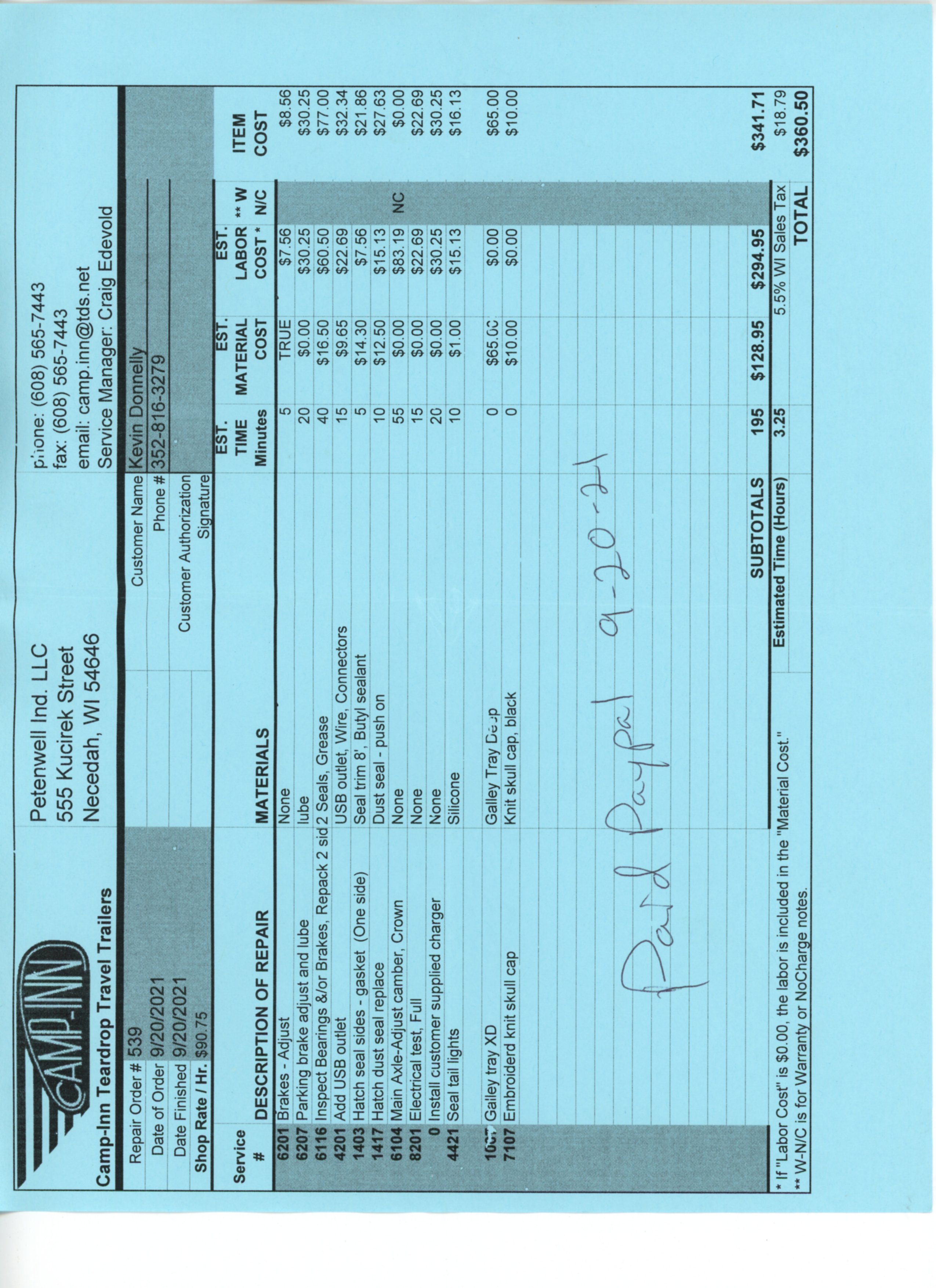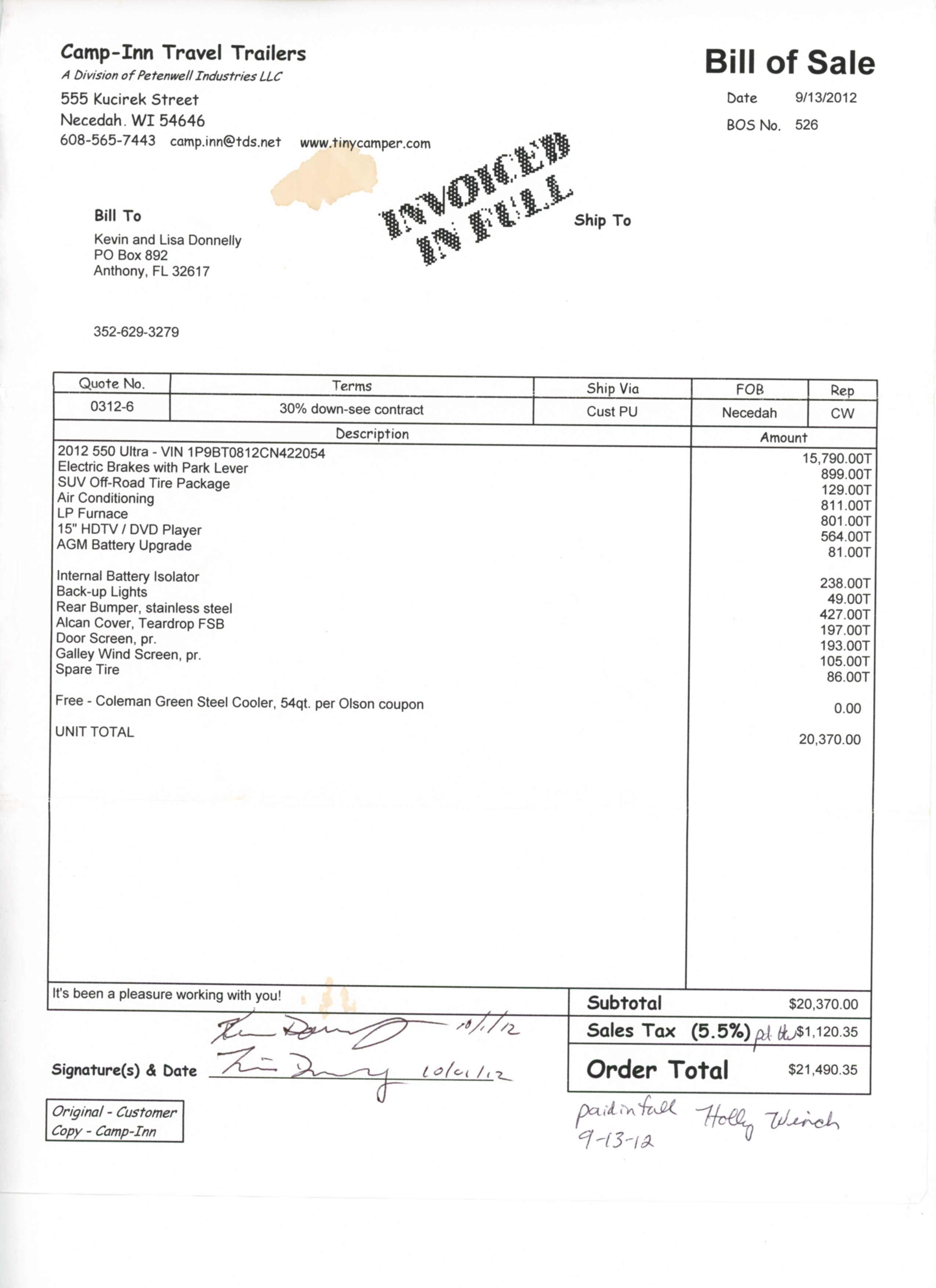 The original invoice is included in the photos below. It includes: