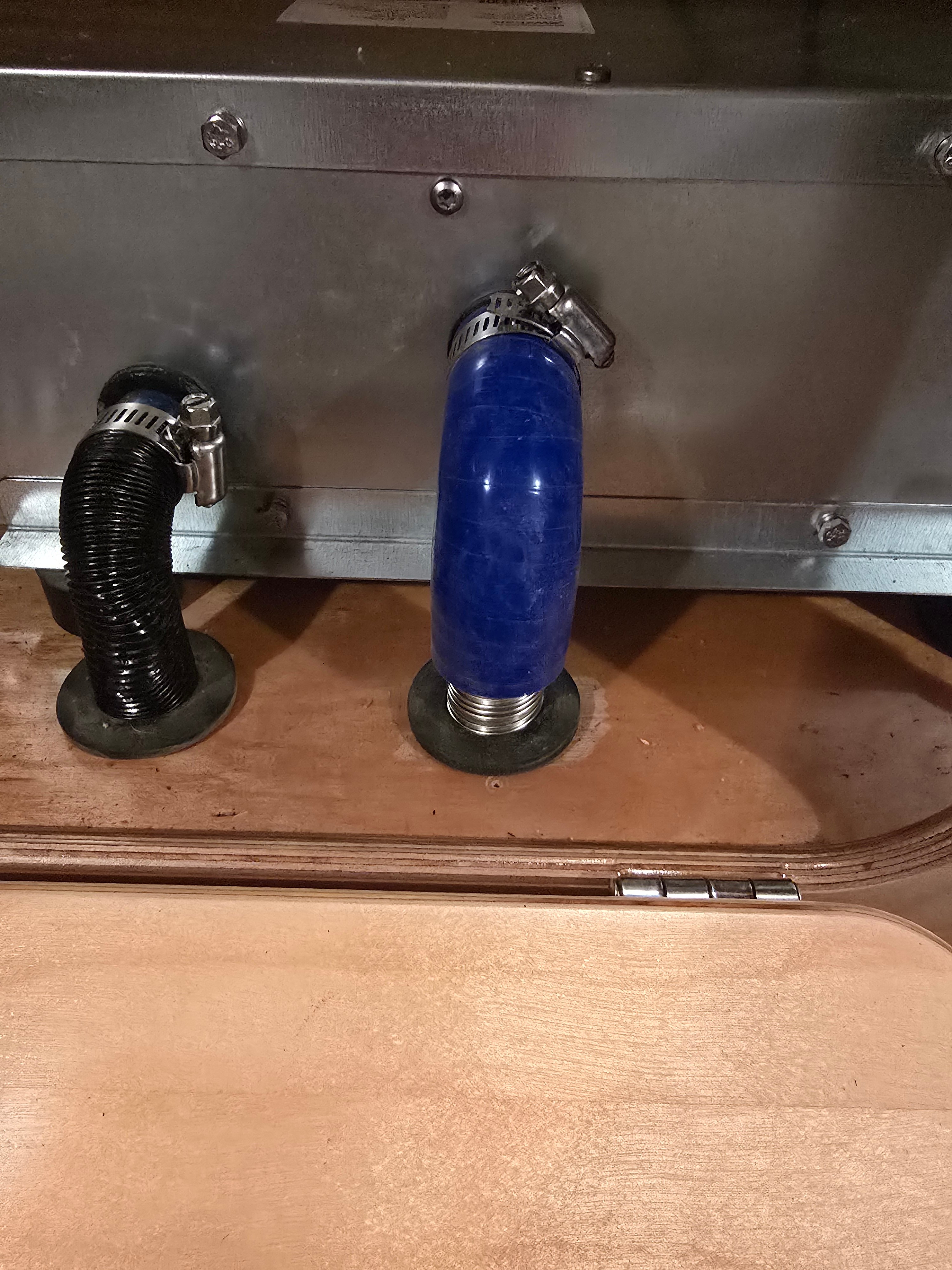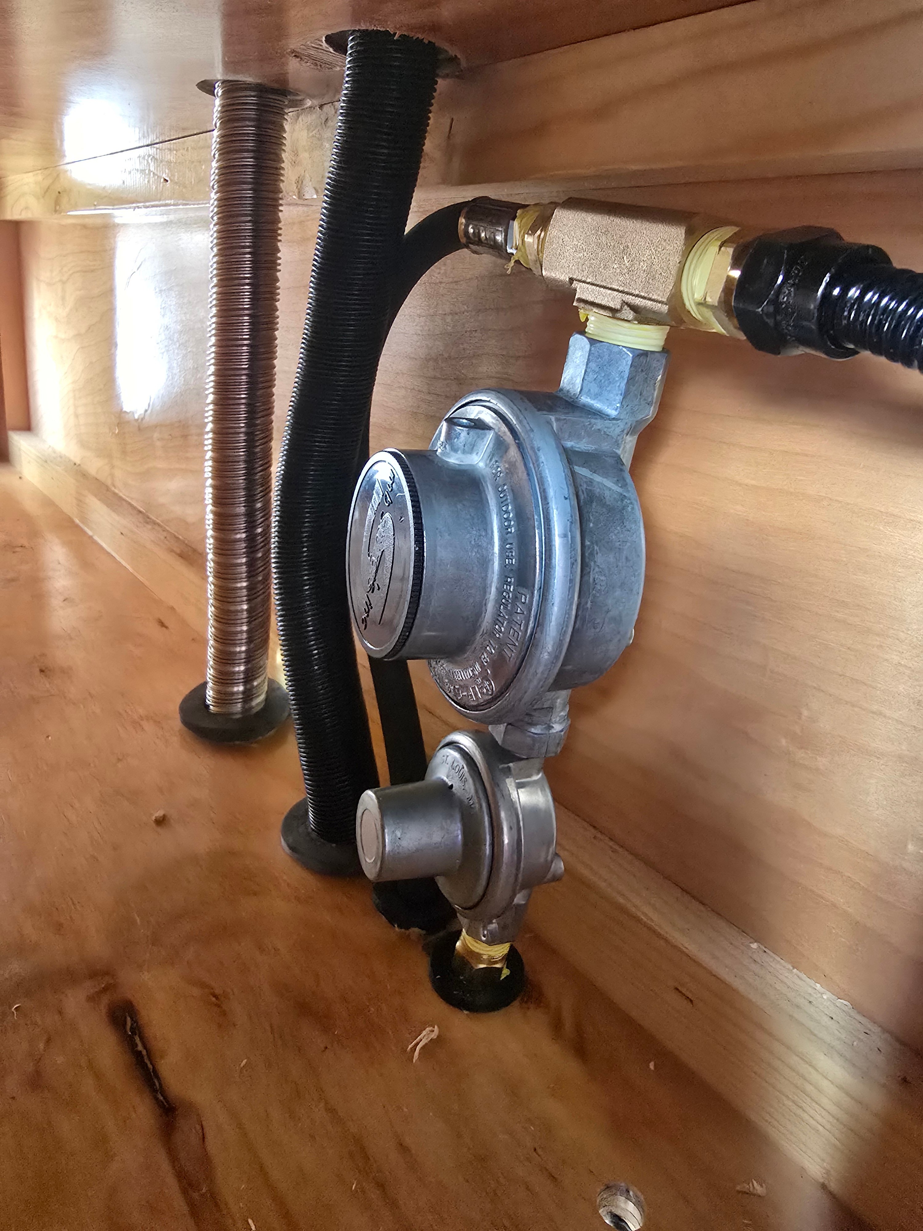 Drilled 2 holes for intake and exhaust, and 2 for gas lines. Was told that the dual stage regulator required vertical mounting , protected. So I installed it in the outside front storage area.