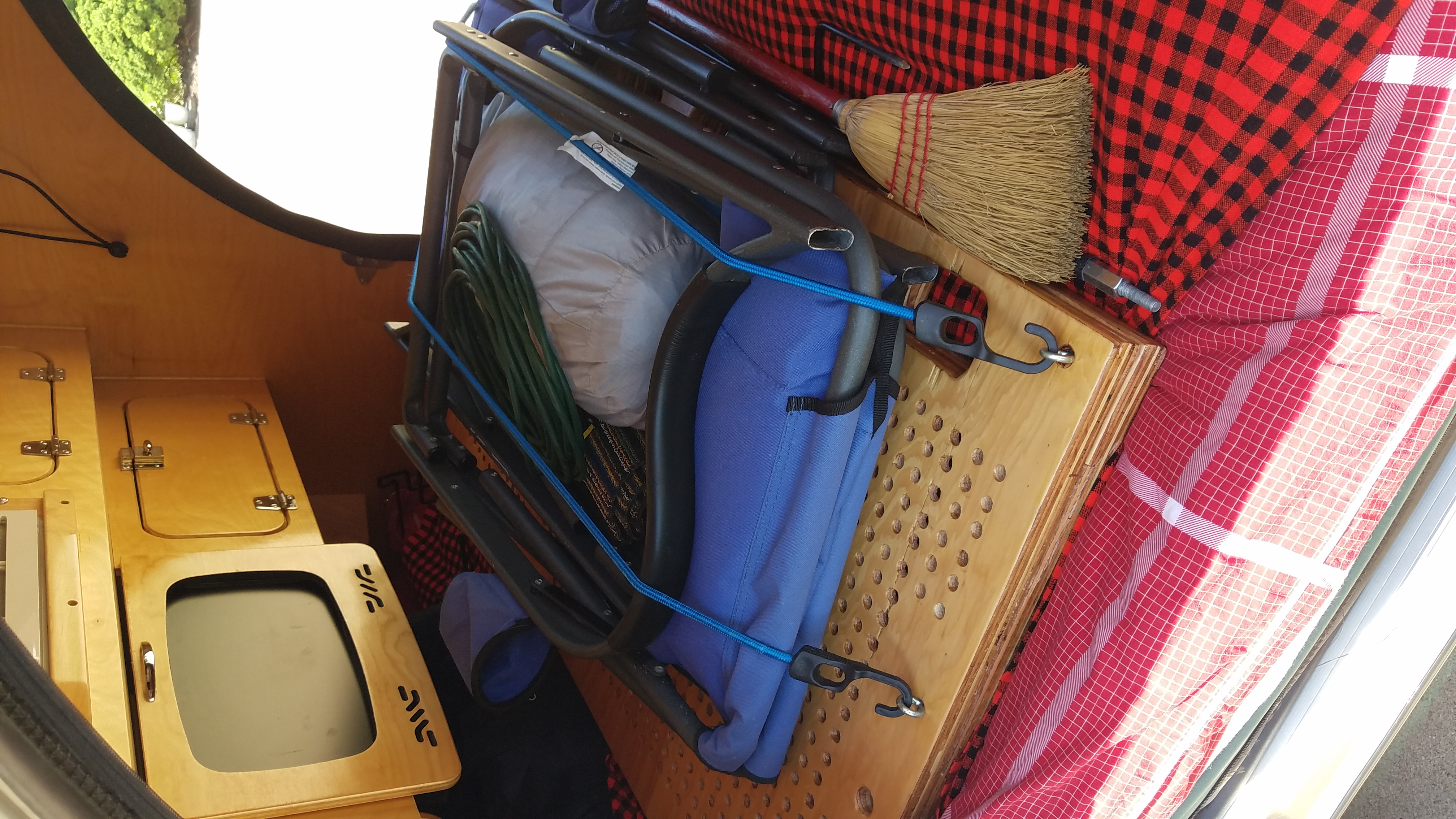 When the platform is folded is slides into the bed of our 560, the eyebolts can be used to secure items in the camper such as cooler. We hope to field test this soon, hopefully it will meet my expectations, if not told Missy we could use it as a portable dance floor...R