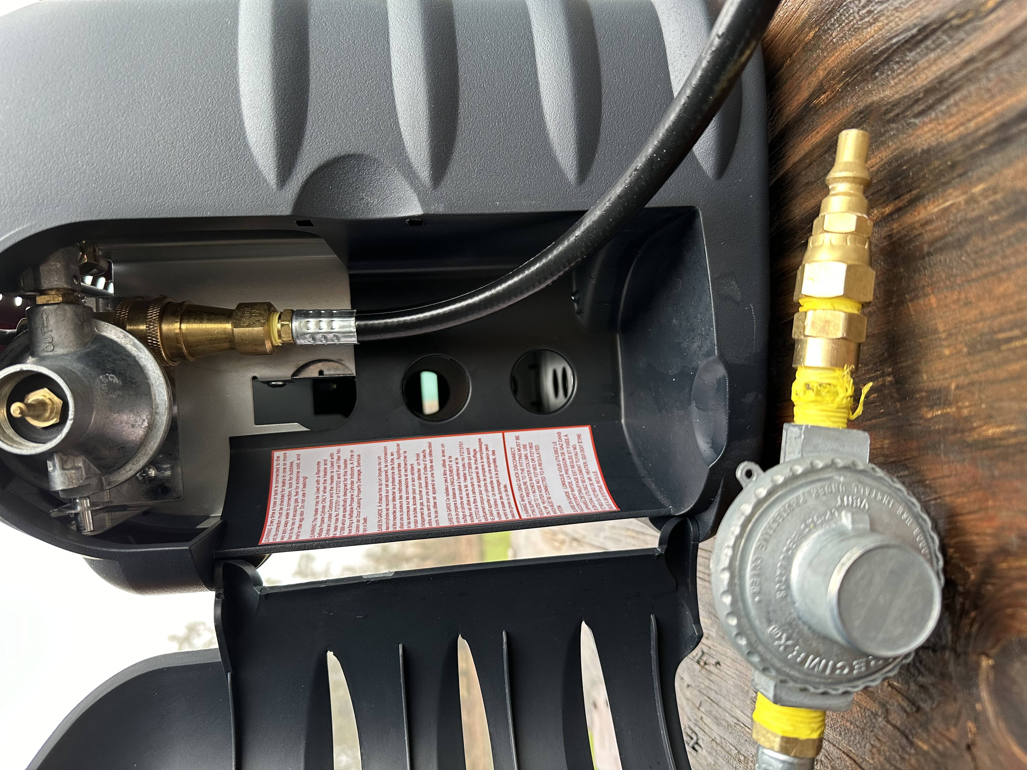 Sweeney: I think, somehow, you got lucky. Possibly. Using your configuration was what started me starting this thread in the first place: neither version of the Buddy (regular and Big) would light using a straight hose from the side port into the 1lb connection. Our consensus was that the resultant combined pressure reductions from the 20PSI regulator on the tank and the internal regulator in the heater (at the 1 lb connection) was a non-starter. The internal regulator on the heater is meant only to be used directly off an unregulated tank at +120PSI. This is per Mr Heater.
