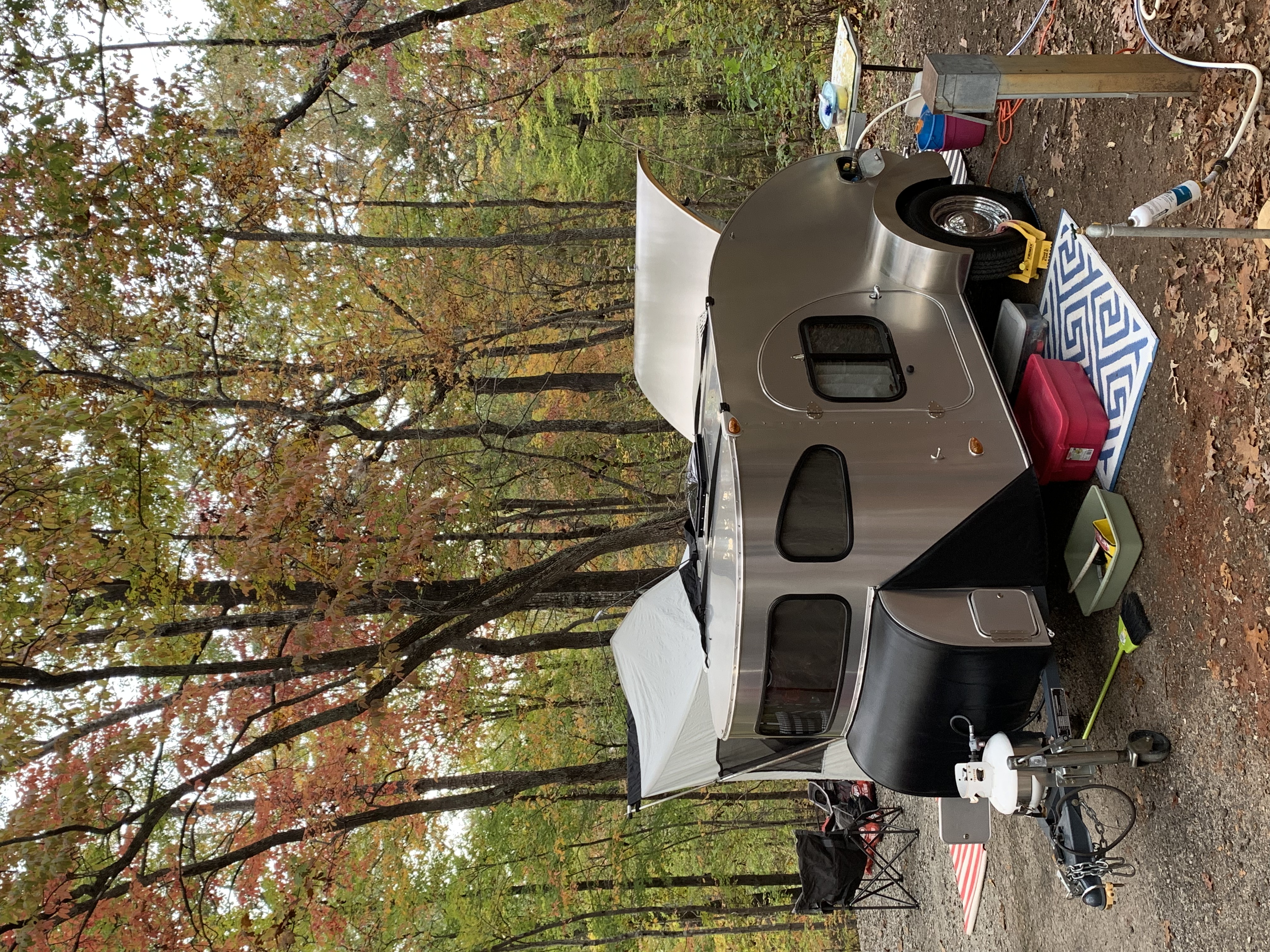 Spent the weekend camping at one of our favorite campgrounds, Keowee-Toxaway State Park at the base of the SC mountains. This got us to 150 nights of camping in Jeremiah. We had the first nights below 40 in SC since last spring so a campfire was in order. Fall color was close to peak but not quite there yet. Saturday we hiked the Raven Rock Trail in the park which takes you to Raven Rock which overlooks Lake Keowee (See pics). We’ve paddled on the lake below the rock, but this was the first time by trail. Afterwards, we went to a local brewery that always live music on their outdoor stage & ate BBQ from a food truck there. A nice weekend which may finish us up for the season.