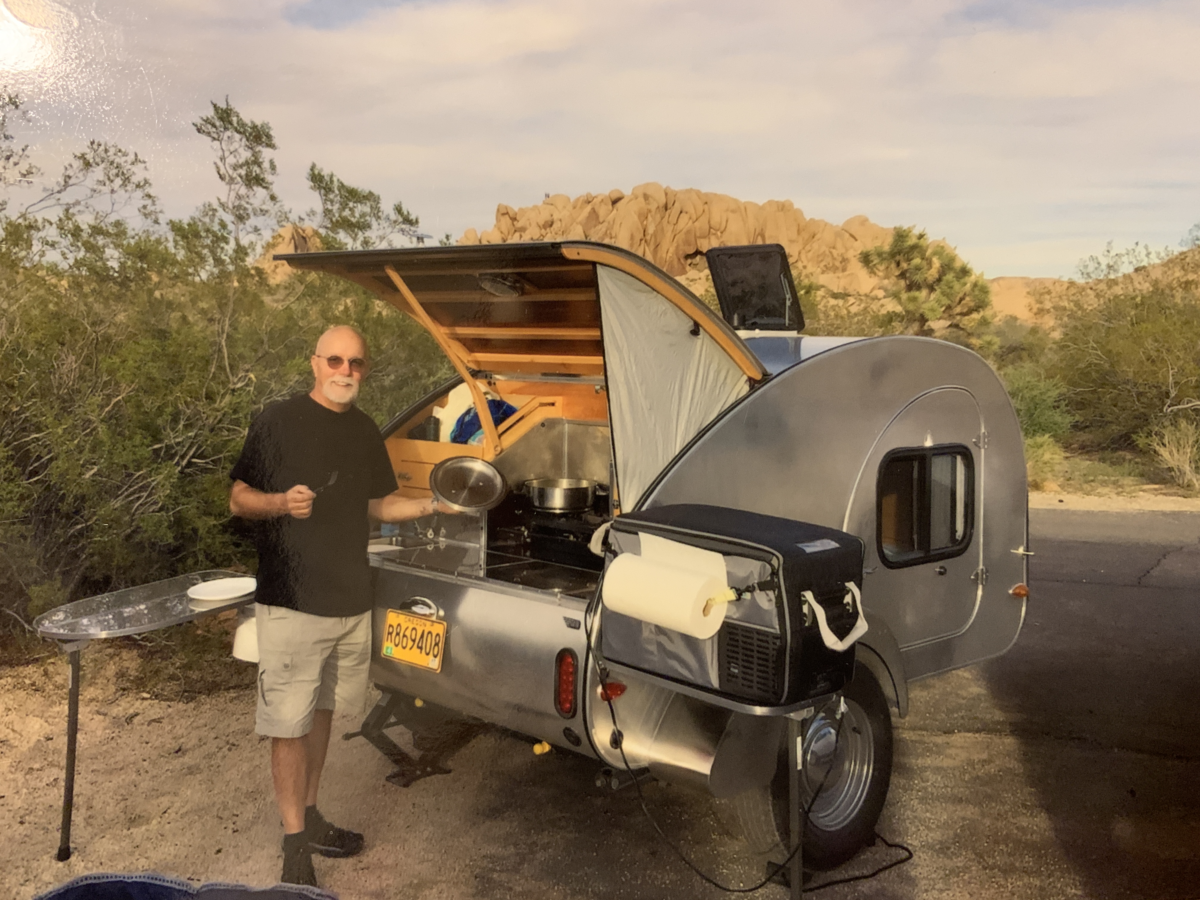 Gently used. Well-loved. Very good condition. Asking $11,500. SUV package. LP furnace. 15" TV and DVD player. Mahogany paneling. Solar connector. Alcan covering. Door screens. Galley wind screens. Custom cabin lights. Propane gas tank. Hypervent mattress layer. Fantastic fan. Electric brakes. AGM battery. Battery isolation. Two side tables. The picture shows a Dometic refrigerator that we no longer have. We are the second owners and have had this beloved trailer since 2015. Always garaged unless in use. Our aging bodies aren't allowing us to do this type of camping anymore. We are in Eugene, Oregon. We haven't had the teardrop out of our garage for over a year. When we pull it out we will add pictures of interior. 541-Five one four-3861