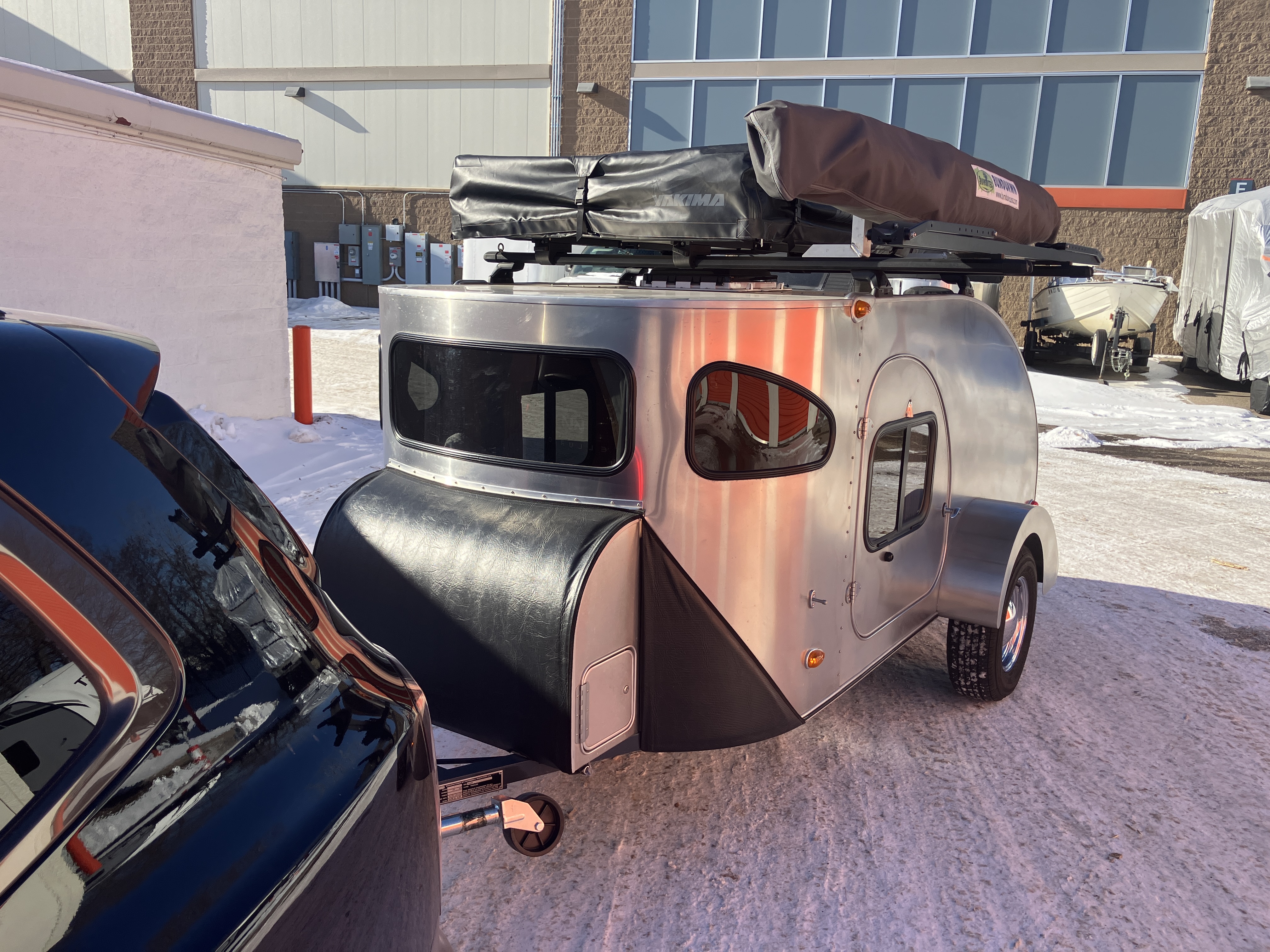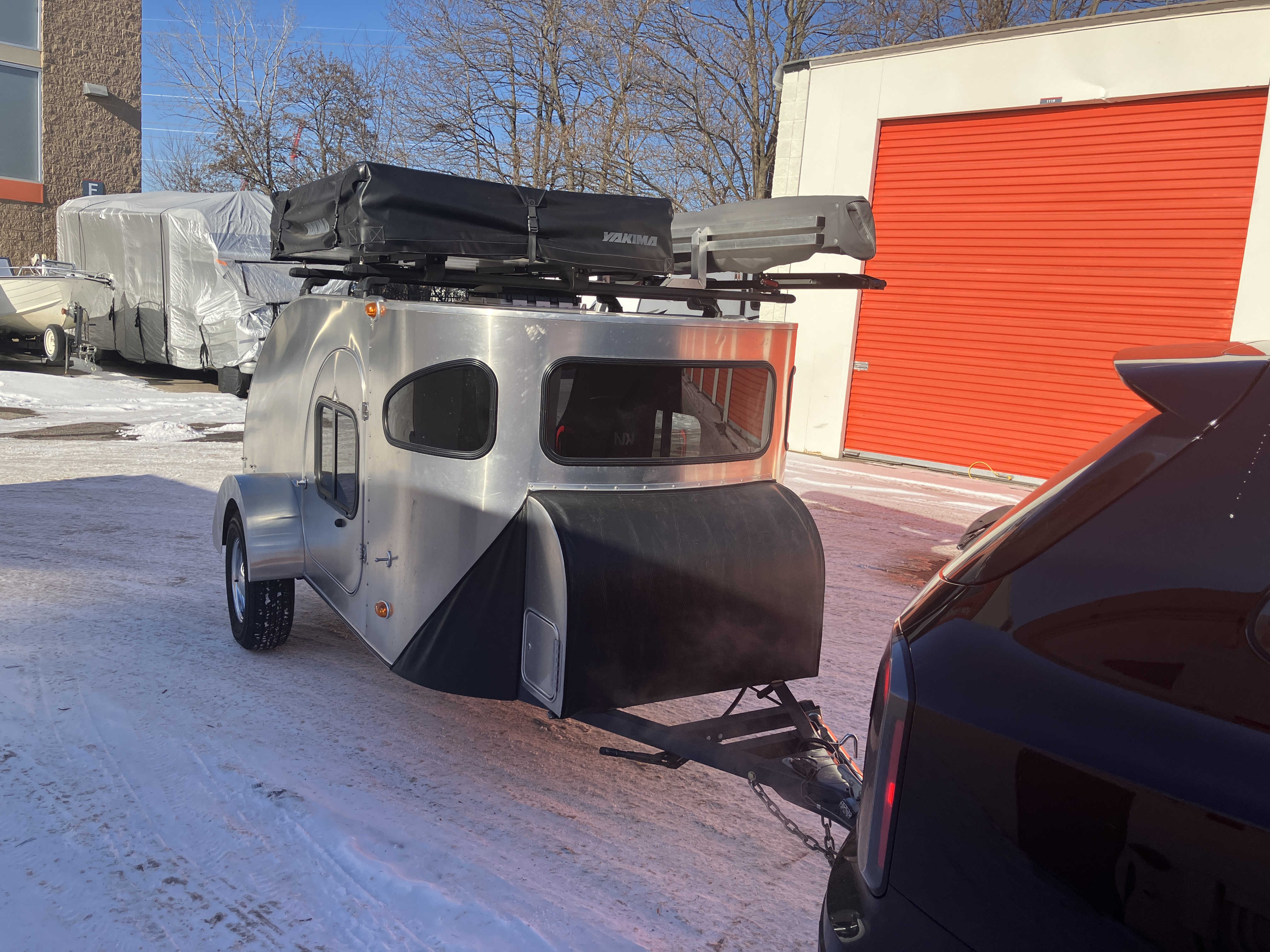 For three months this winter the trailer was covered outdoors in a secure storage facility but every other winter the camper has been garaged indoors. The camper is in excellent condition and Walbernized last fall. About 3,000 miles on new tires. All upgrades from CampInn except the Yakima heavy duty roof tent and Annex: