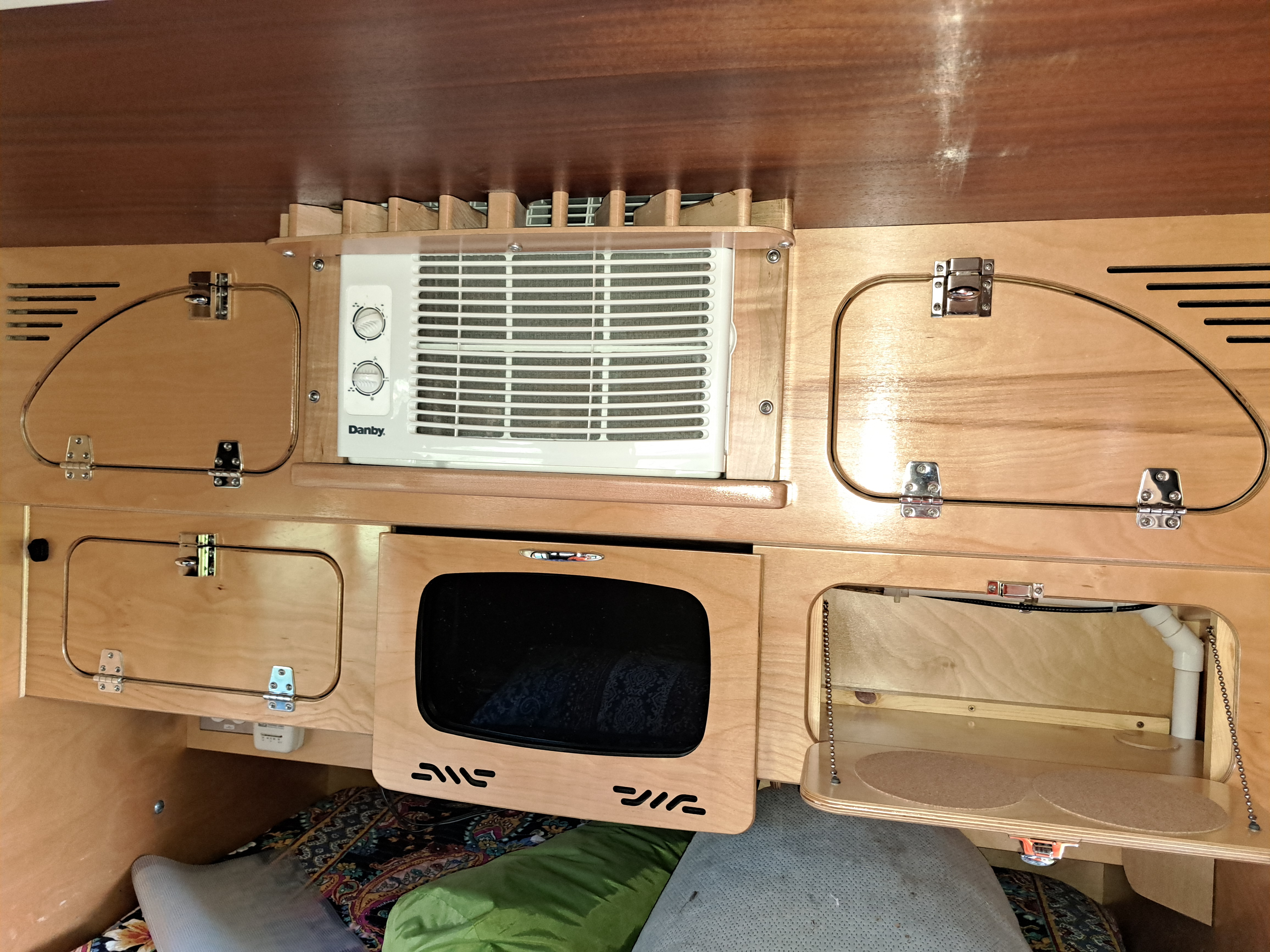 Solarland 120W Portable Solar Charger suitcase style with carry case, Electric cords and water lines, Big Agnes Shelter with wind screen for over galley area, Eureka Northern Breeze screen tent, Sound Bar for the TV, Wheel Chocks, Coupler Lock, Saris Bike Rack