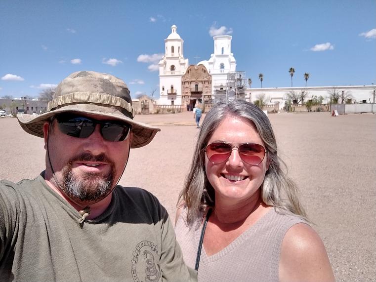 We hit the San Xavier Del Bac Mission for some really cool architecture and cultural history on our way to our next stop, Gilbert Ray campground near Tucson (three nights). It was here that I almost got kidnapped by a pack of hippie folk musicians when they saw my banjo mountain dulcimer and heard that sweet banjo sound. I remember hearing about pack rats, but they were particularly bad here. One of the camp hosts had $2000 worth of damage to his engine in ONE NIGHT. So, everyone had the hoods of their vehicles open and lights under their vehicles to discourage the rodents from eating and destroying the rubber-ish components in their engines. Leaving the hood open creates more airflow, which the rats don't apparently like. I had some red rope lights, so I deployed those, although white lights are much better since the pack rats don't see the reds as much. The white LED hanging lights I had were also used...one in the engine compartment, and one on the ground under the engine. Certain years of Ford vehicles have soy-based insulation instead of petroleum-based insulation in their engine compartments, and the pack rats apparently love the soy, so be aware of that if your tow vehicle is so inclined. Much of the pack rat problem was supposedly minimized when they removed some big nests in the area around the campsite, but there is still a decent risk. It's worth noting that the risk goes up the longer your vehicle is parked, since the the pack rats explore more and more as they get familiar with your vehicle...and they follow their urine trail to return to where they were on previous nights. None of this will prevent me from camping there again. It's a beautiful campground with amazing desert saguaro scenery; we had literally thousands of saguaros visible from our campsite. LOVED IT. Next time, though, we'll bring the motion-sensing strobe light units with ultrasonic repeller that most people down there recommend.