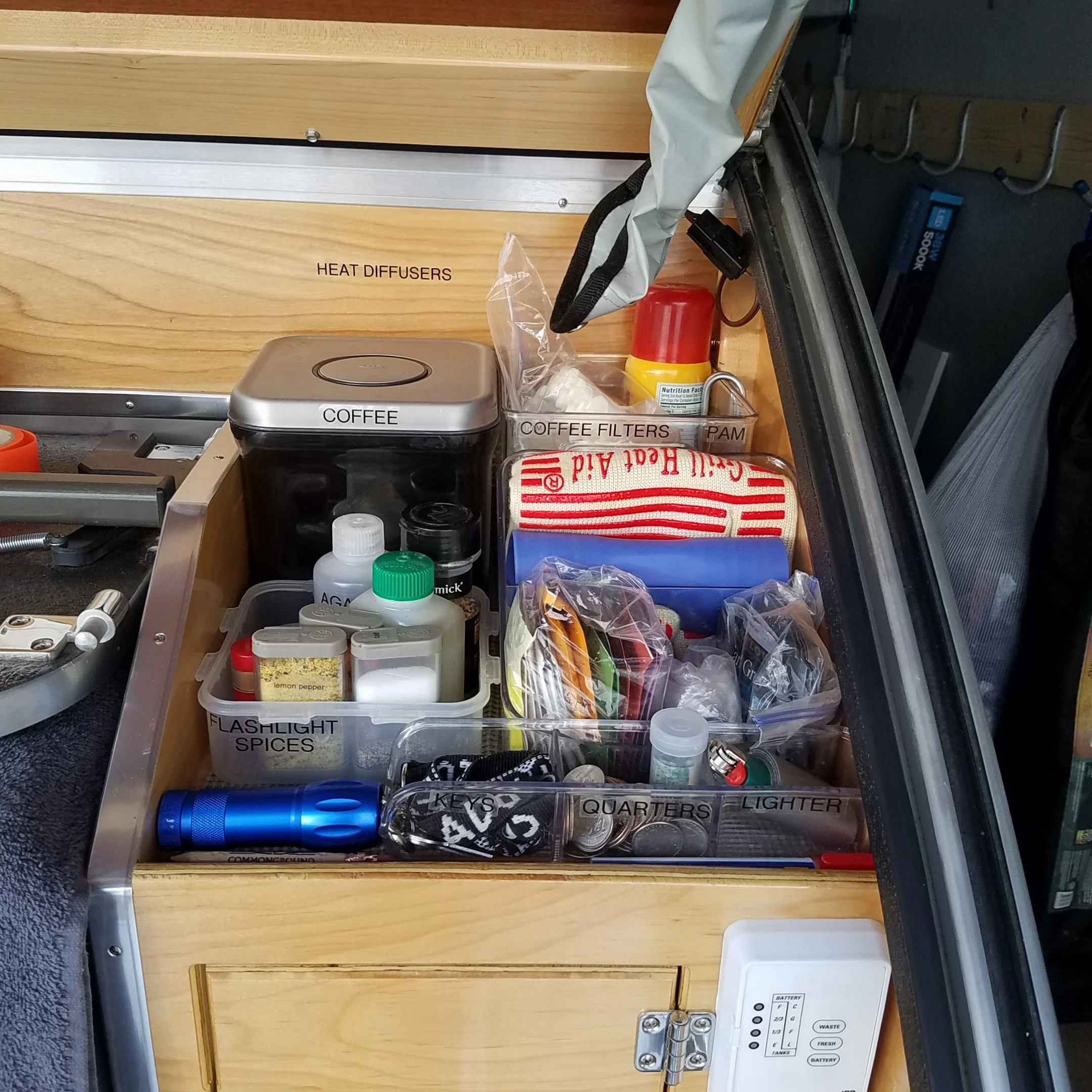 smitz Newbie Jun 13, 2018 #1 Galley is very organized with labels and clear plastic bins keep contents secure. Attachments 15289374570731073170891.webp 502.2 KB · Views: 688 15289375069231662461736.webp 450.9 KB · Views: 570 1528937532327804381266.webp 656.3 KB · Views: 546