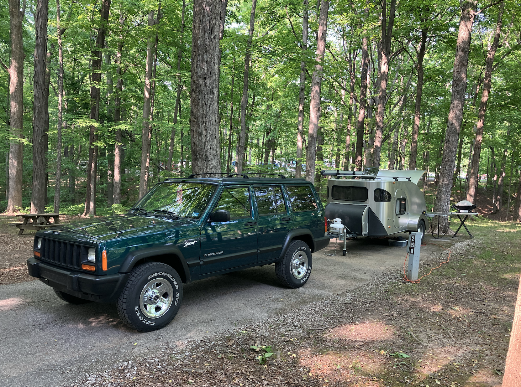 The teardop is slightly taller than the Cherokee --- but it still tows beautifully. I think this will be a great addition to our camping routine.