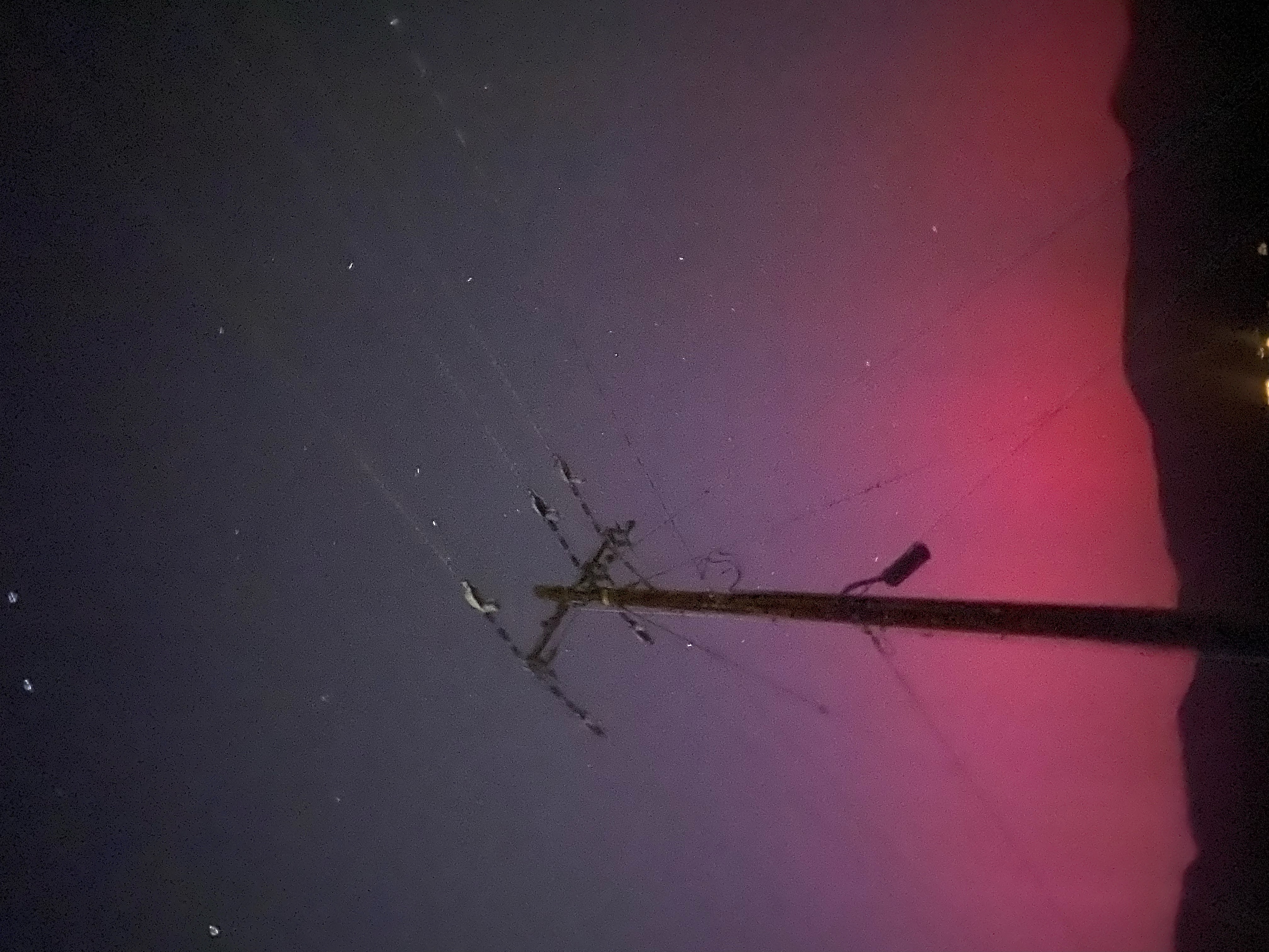 One of my team mates took pictures of the light show --- it was solid pink here, I really wish I coul have seen them, but it isnt' looking like I'll get a chance. Though I anticipate the solar flares that kicked this event off may be more prominent this summer. The sun is obviously going into a different cycle...Looks like we get to see if stories about grid failure and solar storms is true...